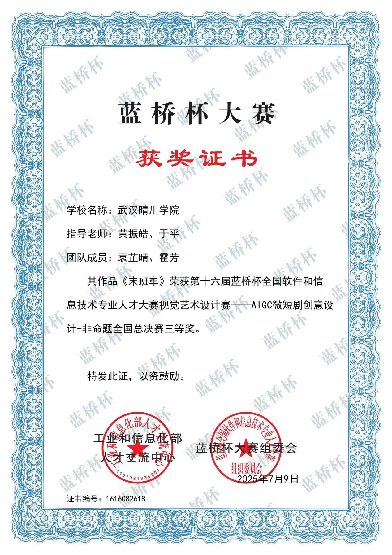 (来源:传媒艺术学院   编辑:刘蕾)近日,第十七届全国大学生广告艺术大赛与第十六届蓝桥杯全国软件和信息技术专业人才大赛——视觉艺术设计赛相继圆满落幕。武汉晴川学院传媒艺术学院师生团结一心、倾力投入,在两大赛事中表现突出,累计荣获多项国家级与省级重要奖项,充分展现了学院扎实的教学功底、创新的育人理念以及学子出色的专业能力与艺术创造力。